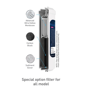 | 2. Carbon block | 2. Advanced Ultra Hollow Membrane (UF filter) | |